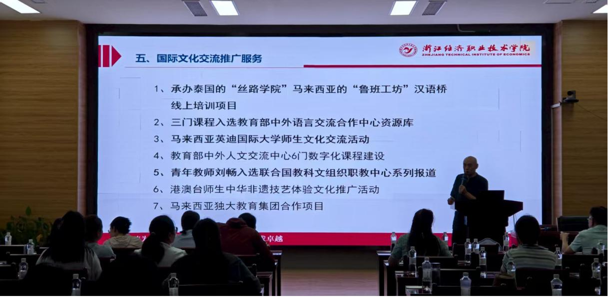 浙江经济职业技术学院文化艺术学院院长朱红亮重点介绍了学校非遗进校园的创新实践,以及通过承办国内外培训交流、文化互鉴项目推动非遗传承,同时分享了数字化课程建设的阶段性成果,全面展现非遗教育的多元发展路径。