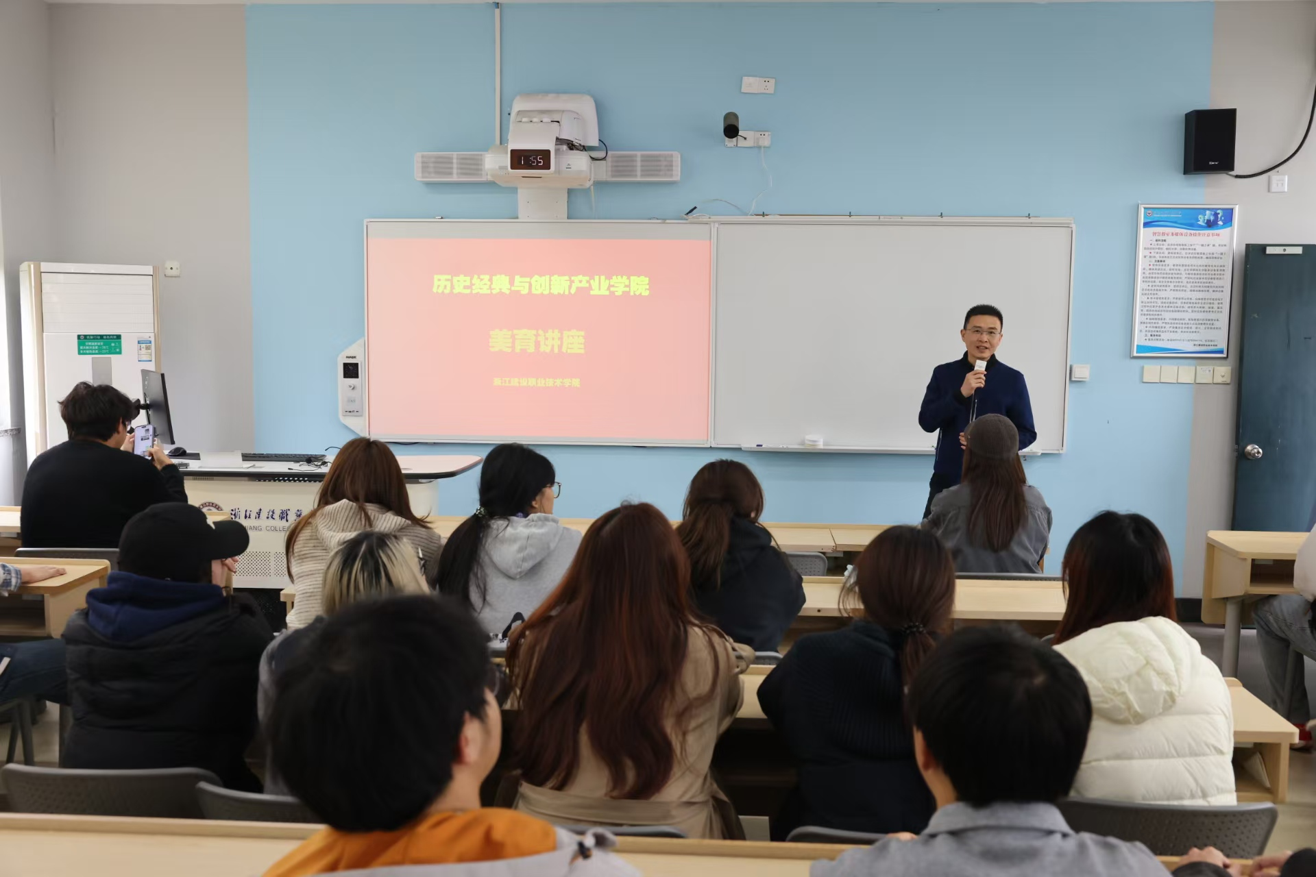 开幕式结束后,师生们聆听了由全国高校非遗文创专家委员会张继周副秘书长主讲的国家级非遗“铜雕技艺”高校巡展系列讲座——“中国非遗铜文化:千年炉火铸就的文明瑰宝”。张继周向同学们讲解了从商周青铜礼乐到当代非遗技艺的中国铜艺发展历程,展现了中华文明的独特印记,其中朱炳仁铜作为非遗铜雕技艺的典范,通过跨界文创、数字传播与市场运营,让非遗铜文化焕发了新的时代生机。此次国家级非遗铜雕技艺高校巡展圆满举办,为师生们带来一场艺术盛宴,生动展现了中华传统工艺与院校深度融合的成果。全国高校非遗文创专家委员会将继续整合资源,推动更多非遗项目走进校园,让文化自信的种子在青年心中生根发芽,绽放时代光华。