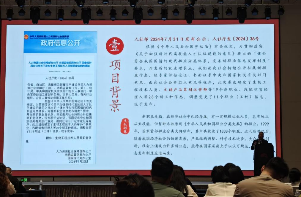 中华文化促进会培训中心主任栗领军介绍人力资源和社会保障部社会保障能力建设中心文创策划运营专题培训项目。2024年7月,人力资源和社会保障部发布的19个新职业中,文创产品策划运营师位列其中。同年,人力资源和社会保障部社会保障能力建设中心与中华文化促进会联合开展文创策划运营专题培训,促进高素质就业、创业。项目采取政企校协同机制,线上线下结合,打造可持续的人才培养体系,为文化创意产业注入新动能,弘扬中华文化,促进文化交流。