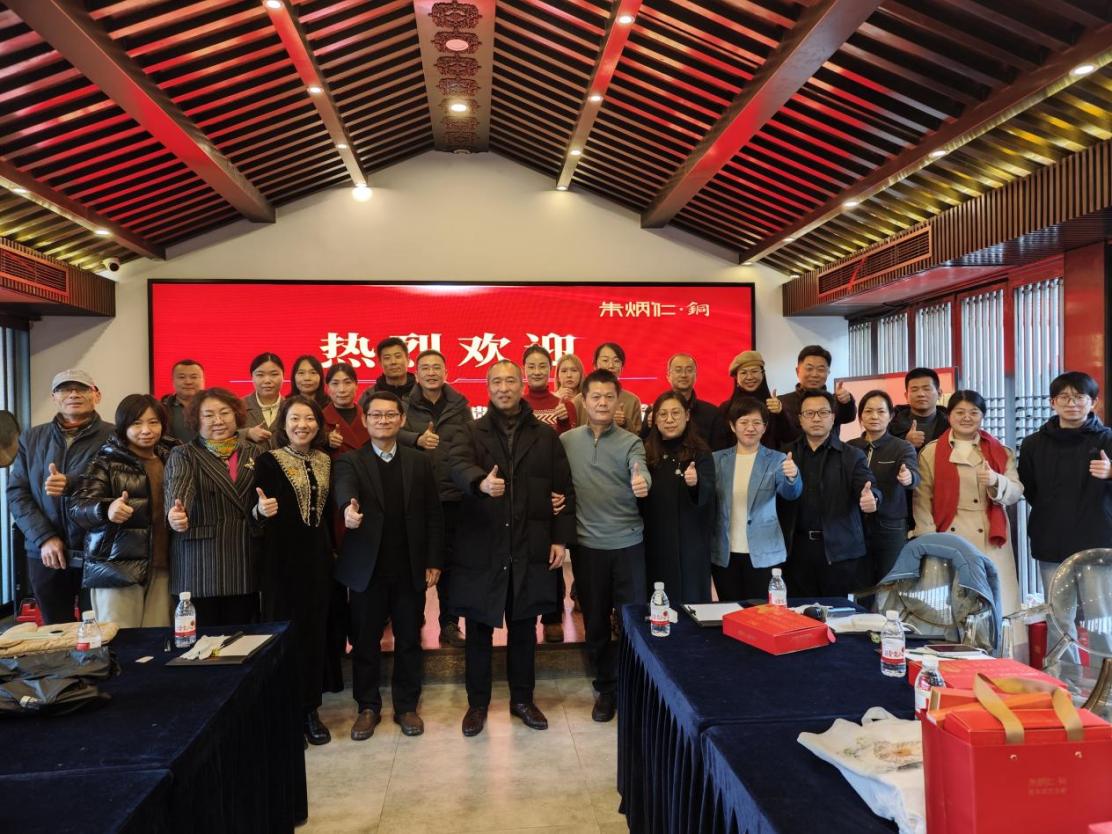 1月9日,参会代表们实地参观考察朱炳仁铜研发生产基地(国家级非遗保护基地),亲身体验国家级非遗“铜雕技艺”的魅力,深入了解公司文创产品的设计与生产流程,感受传统工艺在当代的创新转化。随后在公司会议室召开校企合作研讨会,朱炳仁铜总经理徐洁介绍了公司的发展历程和基本状况。朱炳仁铜近年来通过产品创新与商业模式转型,开发了众多深受市场欢迎的文创产品,年营收快速增长至十多亿元规模,成为非遗文创行业的领军企业。徐洁表示企业在快速成长过程中,也面临人才短缺、设计创新难等发展制约,衷心希望能与院校在学生实习、就业、创业、文创设计开发、技艺创新以及生产等方面建立深入务实合作。